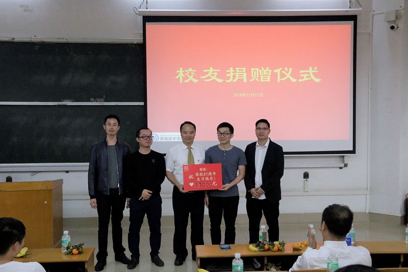 当天上午,我院在教学楼4201开展报告会,会议由分团委书记谢建周主持,贺爱东作主讲,他从了解学院、产教融合办学、改革中的学院、校友共助学院发展多方面介绍了我院的发展情况。随后,我院举行了校友捐赠仪式,校友郑德章、黄卓晔、陈妃兴等多位校友捐款支持我院学院建设,由学校副校长廖俊杰为我院接受捐赠。最后,辛胜凯代表校友上台发言,他感恩母校的培育之情,同时也感慨学校发展之迅速,并表示会一如既往的支持学院的发展,希望母校越来越好。会后,在贺爱东副院长的带领下,校友们参观了我院的精密制造实训基地和智能制造产教工业园,先进的机器设备、日益完善的实训环境使校友们大为惊叹,为学院发展速度点赞。