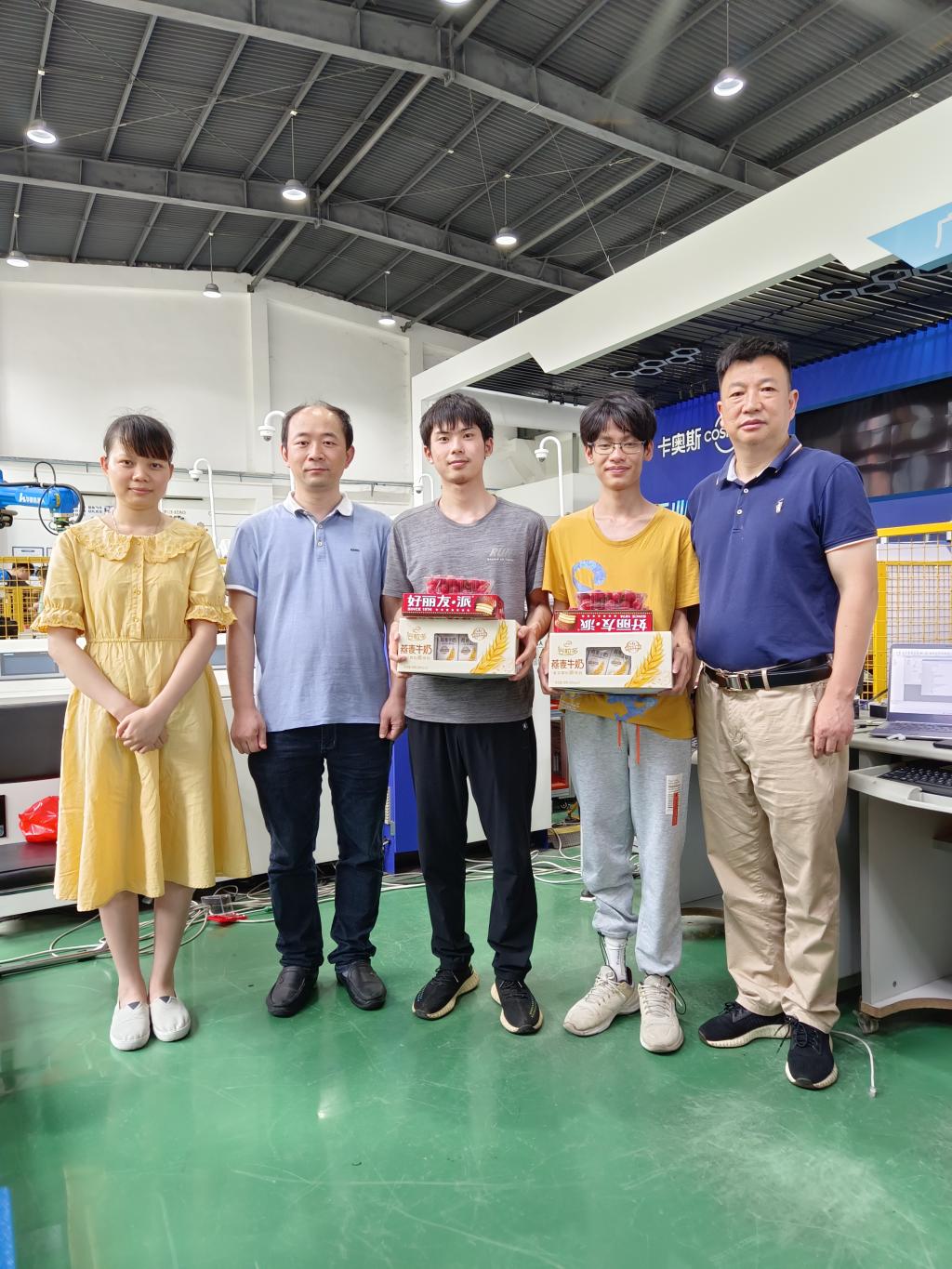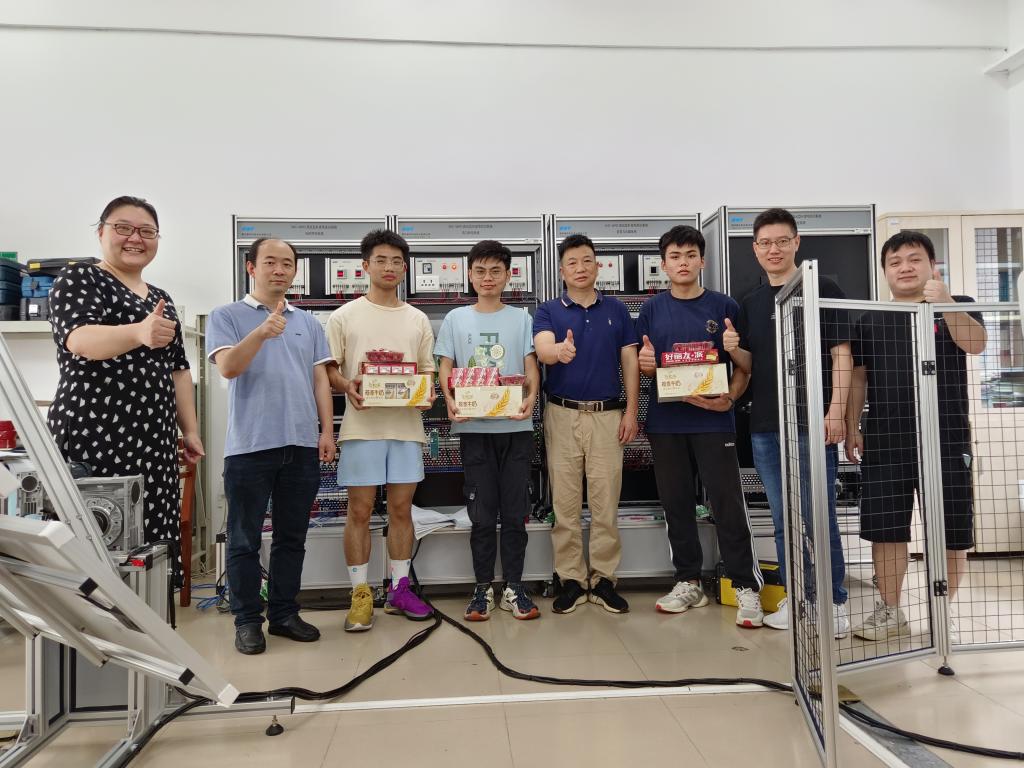 6月2日端午假期前,机电学院张友能院长、赵荣副书记、毛诗柱副院长慰问了正在全力备战国赛的三支参赛队伍学生。