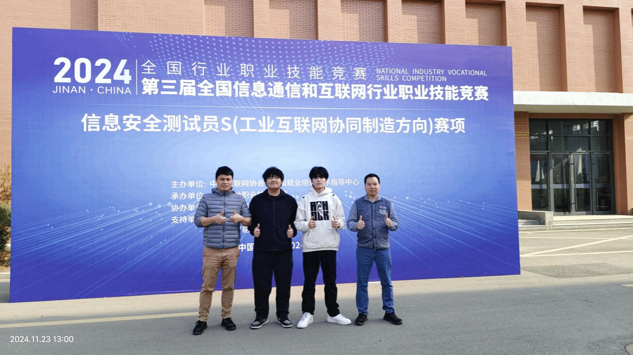 11月19日至11月23日,在山东劳动职业技术学院举办的全国信息通信和互联网行业职业技能竞赛—信息安全测试员S(工业互联网协同制造方向)项目中,我院教师高又春、王芳楷分别获得教师组一等奖和二等奖,机制241班王睿、黄家辉分别获得学生组一等奖和二等奖(指导老师王芳楷、高又春)。