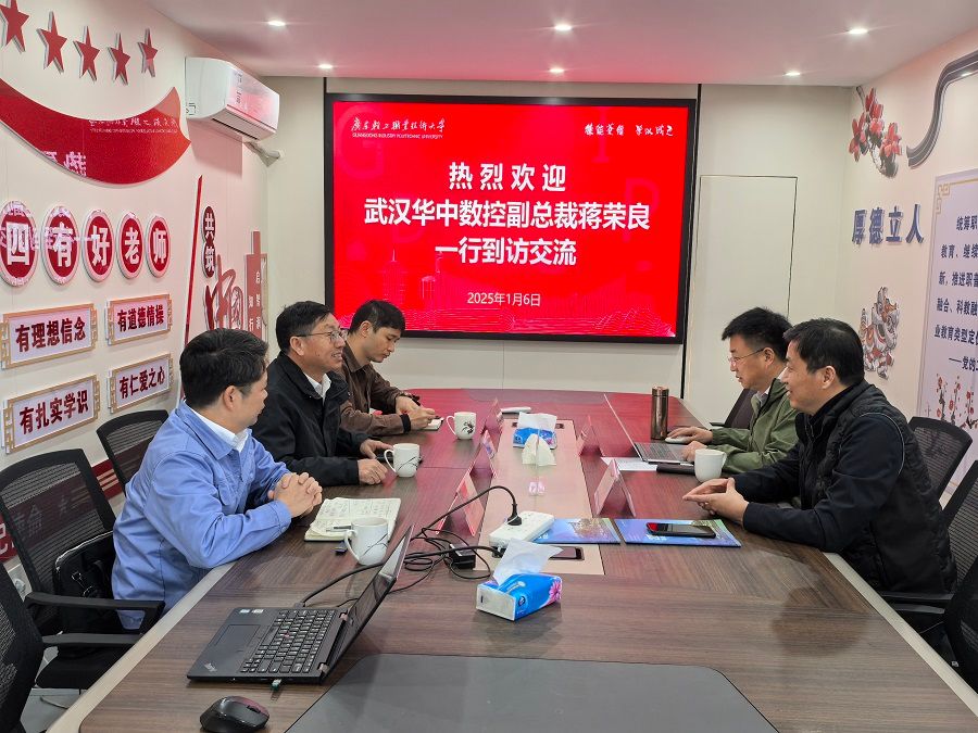 1月6日上午,武汉华中数控副总裁蒋荣良一行3人到访我院,学院院长张友能、学院党委书记余亮彬接待来访客人。
