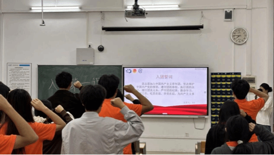 最后,在主讲人的带领下,全体入团发展对象肃立举拳、庄严宣誓,誓词铿锵有力、掷地有声,凝聚青春信念,彰显向团向党、勇担使命的赤诚初心。